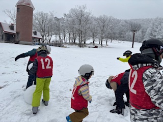 | 夕方のイベント 恒例のレッスン後のミニゲーム 今回は雪柱作りでしたが、なぜか雪合戦となってしまいました。 |
