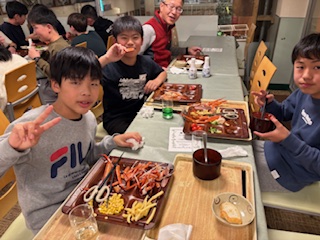 | 昼食 スクール終了後はグループ付指導者と一緒に昼食。 ホテルにて特別に用意してもらいました。 生姜焼き丼!! ![]() |