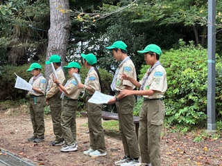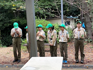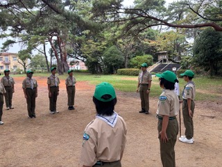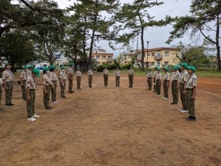| 基本訓練 基本訓練 各班にて訓練します ![]() 国旗掲揚の訓練 ![]() 各班訓練し、基本動作の実践を行います ![]() 上手にU字にならぶことができず苦労します |