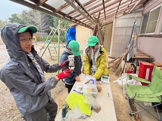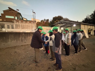 | 点検・朝礼 カッパを着て点検・朝礼を実施 ![]() ![]() スカウツオンサービスもおこないます |