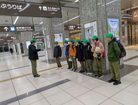 | 朝6時30分の集合。 みんな時間通りに集合できました。 隊長からの挨拶をいただき出発です。 電車を乗り換え2時間かけて名古屋城までやってきました。 お城の中には入れませんでしたが、周囲を散策しました。 復元された本丸御殿を観覧しました。 名古屋城と名古屋城駅の間に金シャチ横丁があります。 そこでお昼ご飯となりました。 それぞれ好きなご飯を選んでいました。 ![]() お店がたくさんあって、選ぶのも楽しそうです。 トヨタ会館に到着しました。 みんなで運転席を取り合います。 ![]() 運転シュミレーション。みんな真剣。車の技術を体験します。 ![]() ![]() C+Walk という乗り物です。上手に乗れました。 ![]() 浜松駅に到着。 帰りは少し遅くなったけど、安全に帰ってくることができました。 同伴者コメント 1日大きな事故もなく班旅行を終えることができました。 班長が班員の意見を聞き最後決断する姿はさすがだなと 思いました。 普段とは違う街中での活動でしたが よい学びができたかと思います。 |