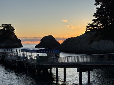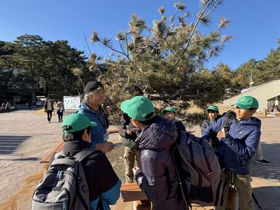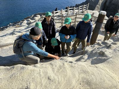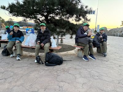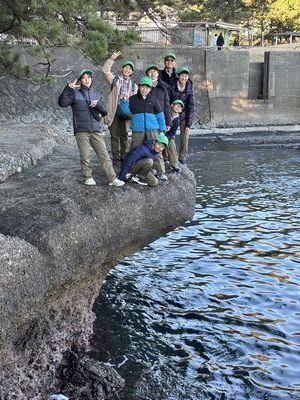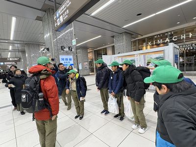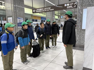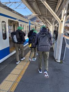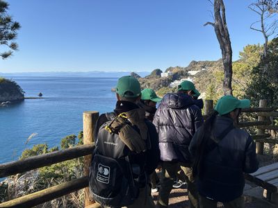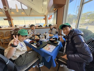 | 5:40 浜松駅集合 全員が集合時間前に集まりました。隊長に出発の報告です。 ![]() JR休日乗り放題切符。中学生スカウトは学割を使っていました。 ![]() JR東海道線で三島間で移動。社内では静かにできました。 ![]() 途中で富士山です。天気に恵まれ、冠雪がきれいに見えました。 ![]() 三島駅で伊豆箱根鉄道に乗り換え。修善寺へ移動します。順調です。 ![]() 修善寺駅で東海バスに乗り換え。瀬浜まで1時間半のバス旅です。 ![]() 瀬浜バス停に到着。堂ヶ島のトンボロまではあと一息。 徒歩で浜辺へ。 ![]() 瀬浜海岸です。今日の潮では渡れません。 指示書に従ってスカウトスキルの活用です。 三角法を使って島までの距離を測っています。 1回目は数字がおかしかったのでやり直し。 2回目で大体250mと計算。 後でジオガイドさんに聞いたら「ほぼ合ってる。」とのこと Good Job! ![]() 計測の後で記念撮影と浜辺を散策。 ![]() 浜に打ち上げられたゴミ。中国の重慶市から。 海の水はとてもきれいです。 ![]() サンセットプラザ堂ヶ島内のレストランで昼食。 ![]() 昼食後の一コマ。観光地の定番、顔出しフォトスポット。 事前に予約しておいたジオガイドツアー。 ジオガイドツアー記念写真。 ガイドの後は洞くつ巡り遊覧船。 堂ヶ島でお土産と少し早い夕御飯。 ![]() 遊覧船乗り場からの夕焼け。西日が綺麗です。 ![]() 17:08のバスに乗車して、浜松へ戻ります。写真はJR東海道線内。 この後、何人かのスカウトはお休みでした。 ![]() 【同伴者のコメント】 全体的に時間通りの進行でした。 皆さん楽しめたと思います。 班長さんの電話でのジオガイドの事前予約も頑張りを感じられます。 班旅行らしい公共機関を乗り継いだプランが良いです。 |