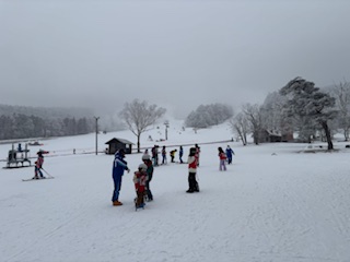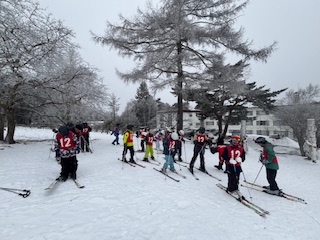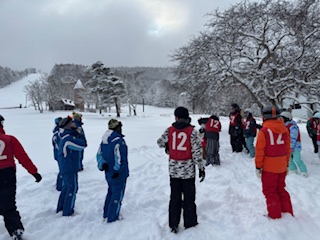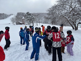 | 午前のセッション スキーレベルに応じたグループに分かれてスキースクール ![]() |