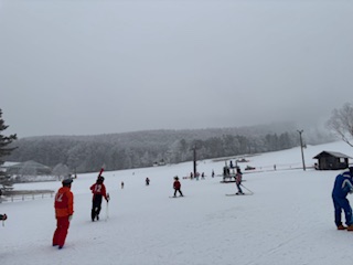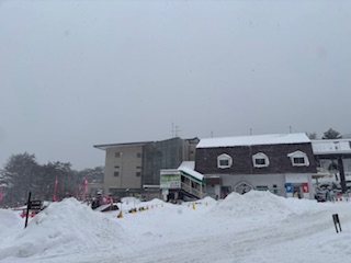 | そして帰路へ スキー訓練終了後,お風呂に入り体を温めました。 お土産を買い、バスで浜松に戻りました。 最後帰る時は、大雪でした。 関東エリアも寒波の影響で通行止めでした。 |