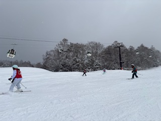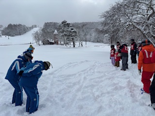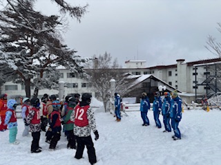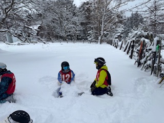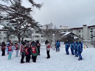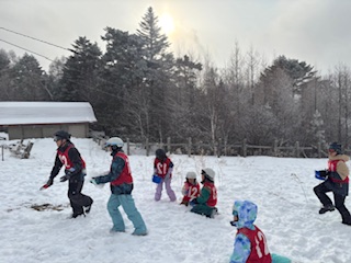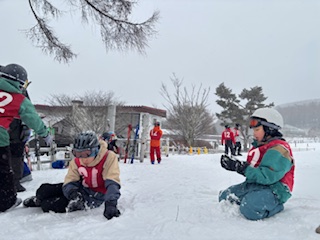| 夕方のイベント 恒例のレッスン後のミニゲーム 今回は雪柱作りでしたが、なぜか雪合戦となってしまいました。 |