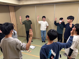 | 夜のセッション 今年の夜のセッションは各班で考えてきてくれたゲーム大会です。 ![]() |
