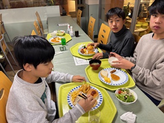 | 昼食 スクール終了後はグループ付指導者と一緒に昼食。 ホテルにて特別に用意してもらいました。 生姜焼き丼!! ![]() |
