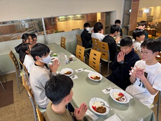 | 昼食 ホテルにお願いして特別に昼食を用意してもらいました。 今回はカレー、おかわりもできました。 |