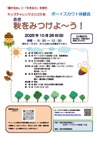 このホームページ上のスカウト運動に関する事項は、ボーイスカウト日本連盟ホームページ掲載「ボーイスカウト関係のホームページ開設」に沿ってボーイスカウト浜松12団広報委員長の責任のもとに掲載しています。 |