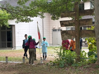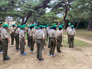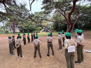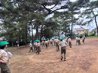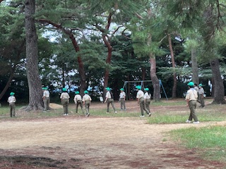 | 基本訓練 基本訓練 各班にて訓練します ![]() 国旗掲揚の訓練 ![]() 各班訓練し、基本動作の実践を行います ![]() 上手にU字にならぶことができず苦労します |